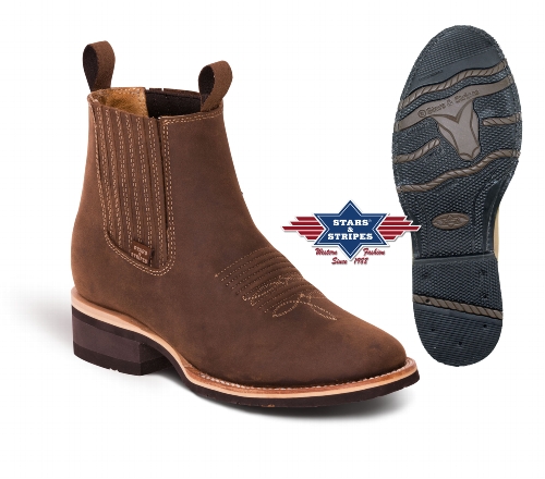 Robuste Westernstiefel aus hochwertigem Rindsleder, im Goodyear-Welt-Verfahren aufgezogen. Mit Lederfutter und Gummisohle. Besonderer Tragekomfort durch die weich gepolsterte Innensohle.