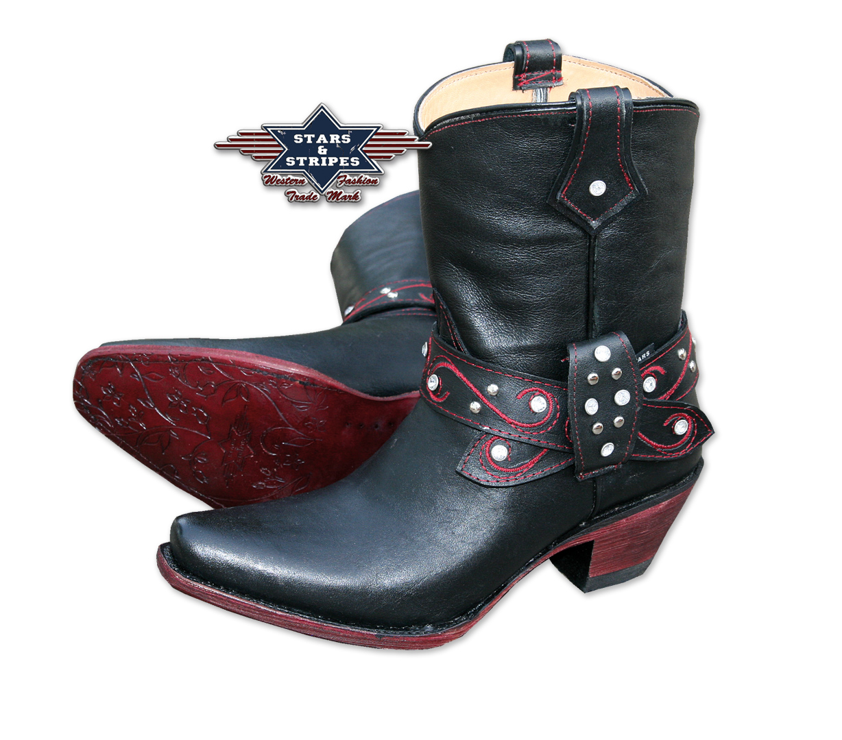 Westernboots aus hochwertigem Rindsleder, für das anspruchsvolle Cowgirl mit aufwendigen Applikationen gearbeitet. Innensohle, Innenfutter, Absatz und die gemusterte Laufsohle sind ebenfalls aus hochwertigem Rindsleder, nach alter mexikanischer Bootmaker Tradition von Hand gefertigt, rahmengenäht und im hochwertigen Goodyear-Welt-Verfahren aufgezogen.