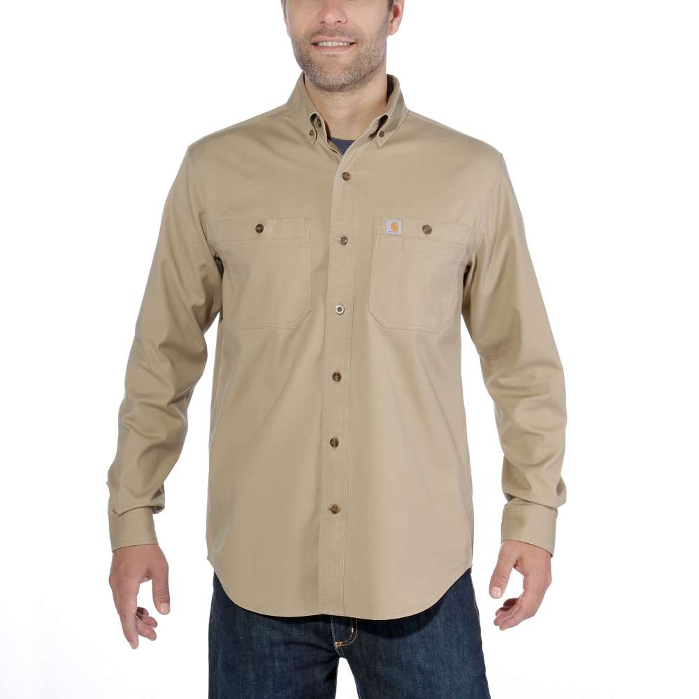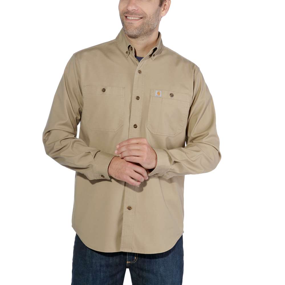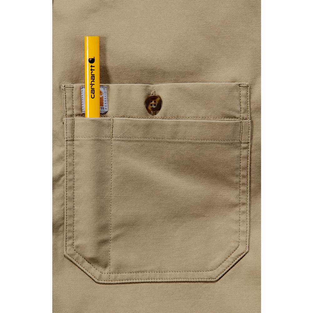 RELAXED FIT · 6.5 oz/yd² - 220 gsm · 98% Baumwolle/2% Elasthan · Canvas mit Stretch · Rugged Flex® - Erleichtert die Bewegung · Lange Ärmel · Zwei Brusttaschen mit Knopfverschluss und eine linke Brusttasche mit zusätzlichem Fach für Stauraum · Knopfverschluss vorne · Verstellbare Manschetten mit zwei Knöpfen und langen Schlitzen · Verlängerter Saum am Rücken · Dreifach gesteppte Hauptnähte