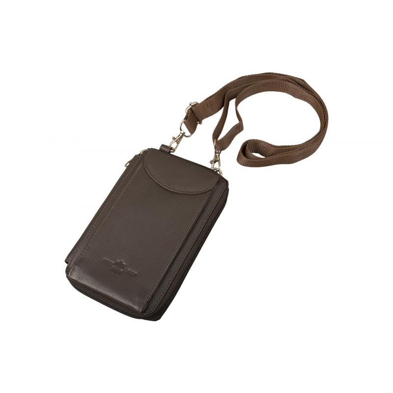 Smartphone Umhängetasche mit 6 Kartenfächern, Kleingeldfach - Rindleder, braun