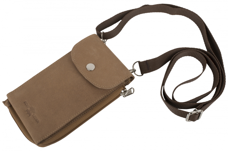 Smartphone Umhängetasche mit extra Geld-/Dokumentenfach Hunter Leder hell