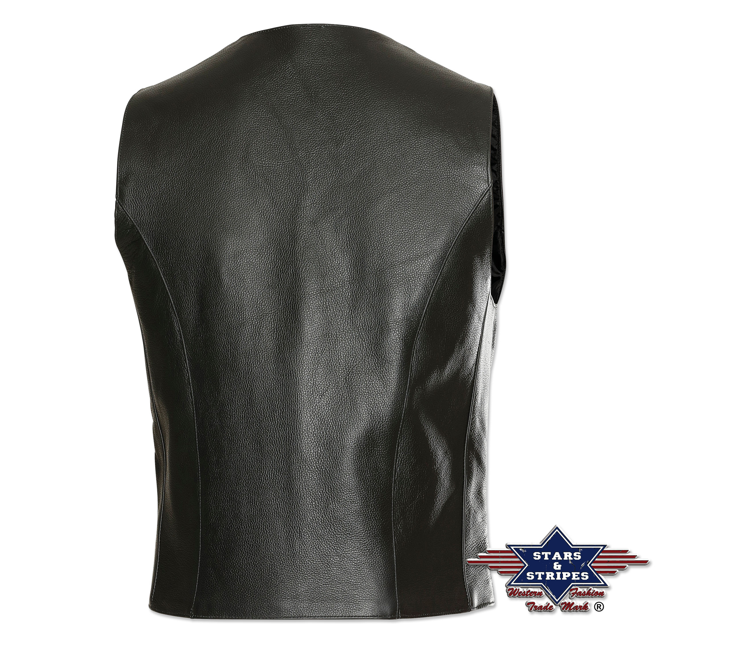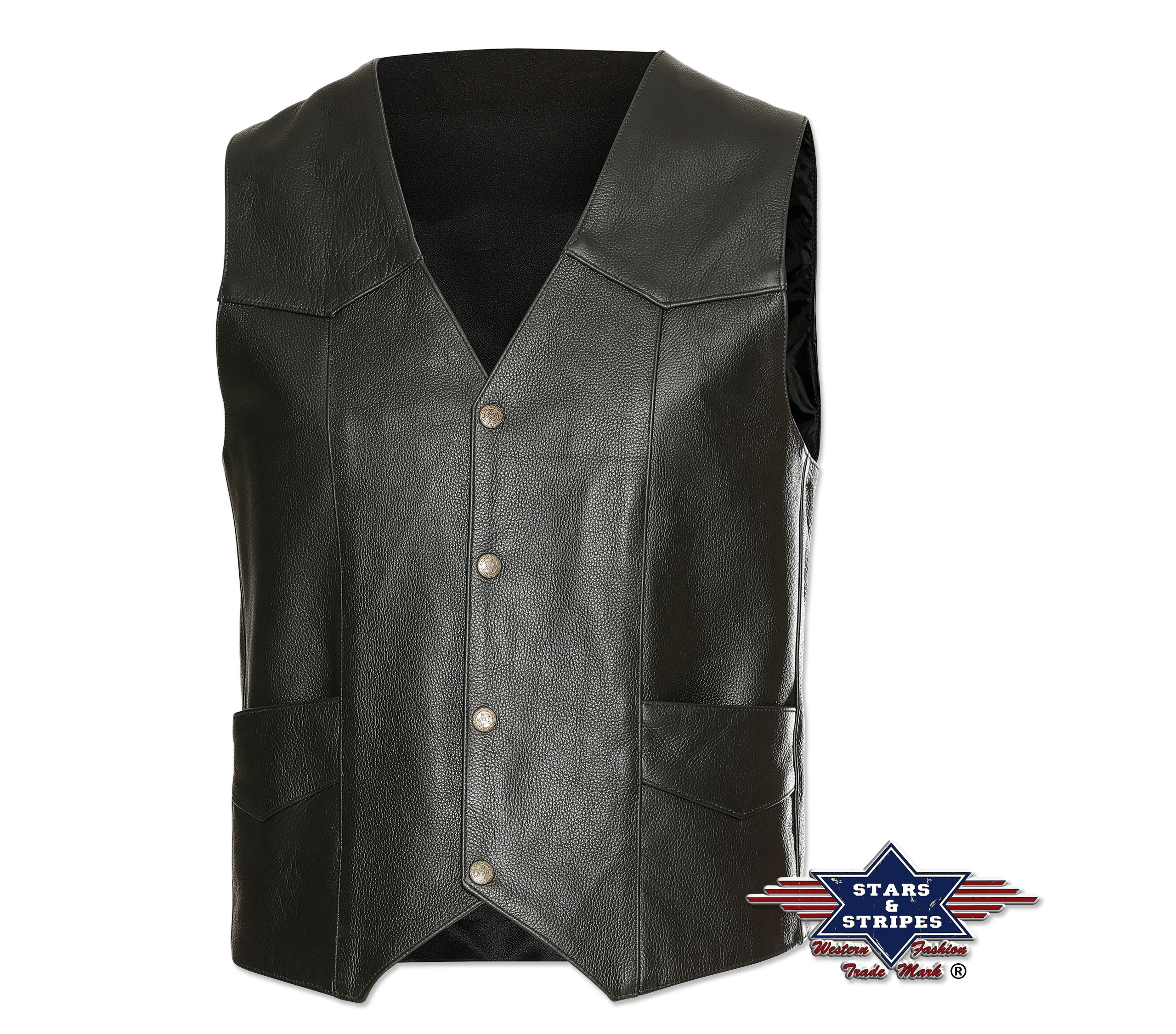 Robuste Western Biker Rindslederweste mit jeweils einer Innen- und Außen-Taschen und Druckknöpfen.