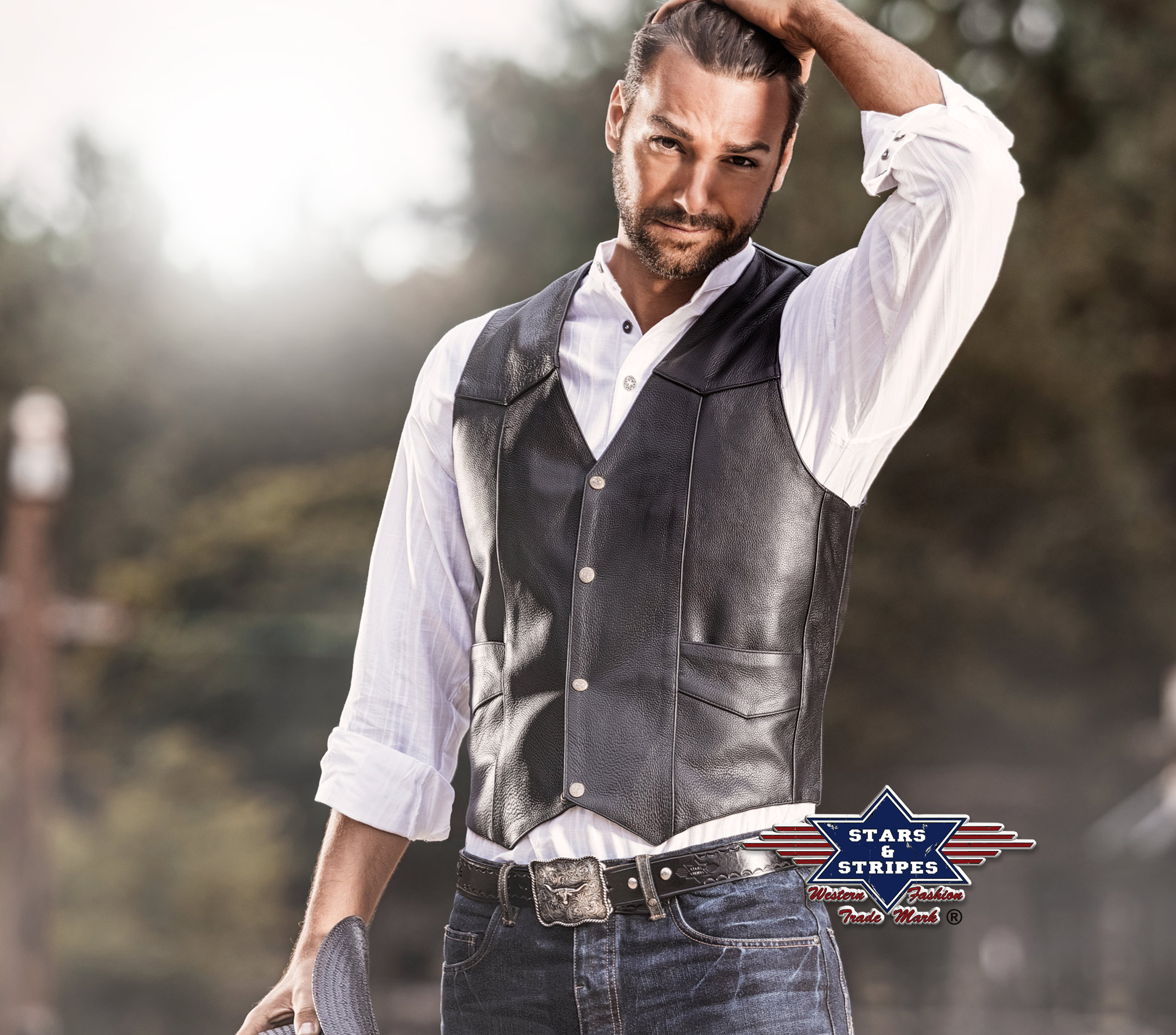 Western Biker Rindslederweste W-01