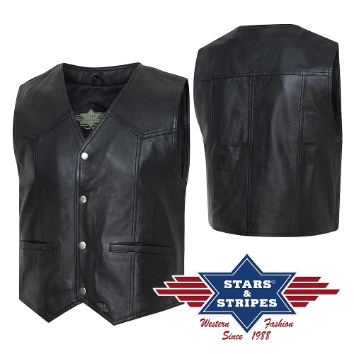 Western Biker Herrenlederweste aus leichtem, handschuhweichem Lamm-Nappaleder. Durch die dezente Schnittform fantastisch zu kombinieren.