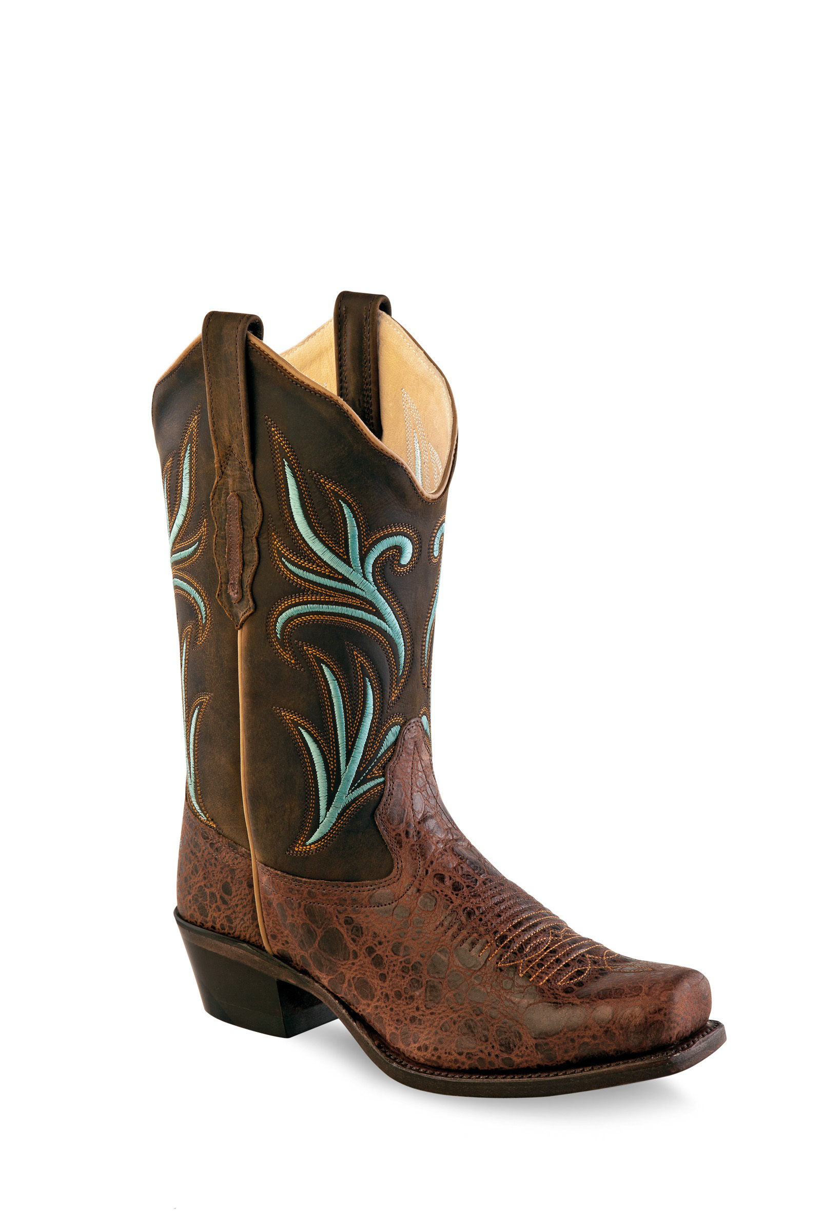 Dámské westernové boty OLD WEST s tyrkysovou výšivkou Brown Truffle Foot / Brown Oily Shaft