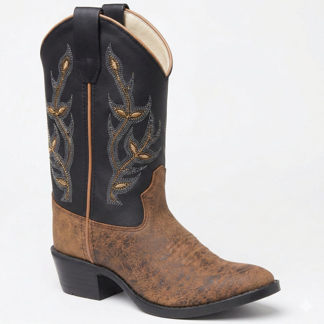 Kovbojské boty pro děti od OLD WEST. Tyto kovbojské boty pro děti jsou vyrobeny z pravé kůže. Ozdobné prošívání vytváří zvláštní vzhled.