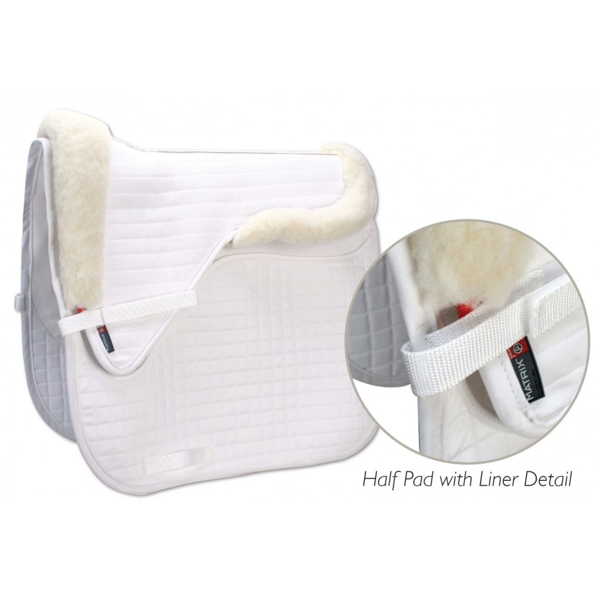 Podložky pod sedla Matrix (Schoolingliner) doplňují technické vlastnosti sedlových podložek Matrix a zároveň slouží jako bariéra proti nečistotám, aby sedlové podložky zůstaly čisté. Spodní strana podložky Schoolingliner je vyrobena z protiskluzové tkaniny s nízkým třením (ETCYg™), která drží sedlo a podložku bezpečně na místě, aniž by omezovala pohyb koně. Tenká membrána ze síťoviny tvoří s podložkou nahoře jeden celek. Tato kombinace zabraňuje pomačkání podložky a zajišťuje vysokou prodyšnost. Kombinace podložky a polštářku působí jako křížově sešitá sedlová podložka. Šňůry podsedlové podložky Matrix procházejí speciálními štěrbinami v podložce (viz obrázek níže) a vytvářejí tak bezpečný a optimalizovaný celek. To znamená, že jednu podsedlovou podložku lze použít s různými podsedlovými podložkami Matrix pro více koní (např. při školním výcviku). Tyto podložky jsou samozřejmě vhodné i do pračky a sušičky.