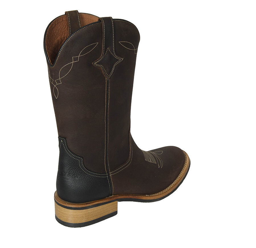 Stálice vhodné pro westernové dělníky v naprosto robustním provedení z vysoce kvalitní syntetické kůže s propracovanými aplikacemi a výšivkami. Ručně vyráběné podle staré mexické obuvnické tradice vysoce kvalitním postupem Goodyear. S měkkou stélkou, gumovou podrážkou odolnou proti kyselinám a olejům a ocelovou špičkou pro zvýšení bezpečnosti!