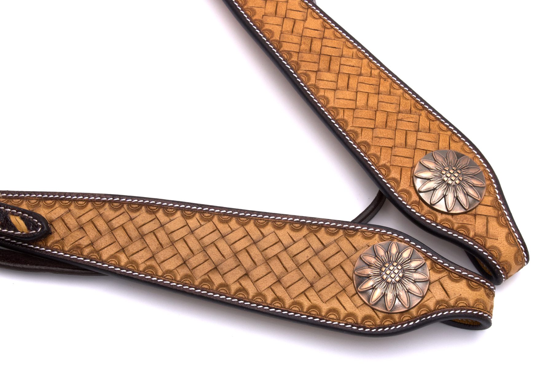 Elegantní dvoubarevná westernová uzdečka s detailním puncováním.