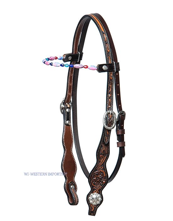 Ručně děrovaná ohlávka s čelenkou "Gemstone" a starožitnými přezkami