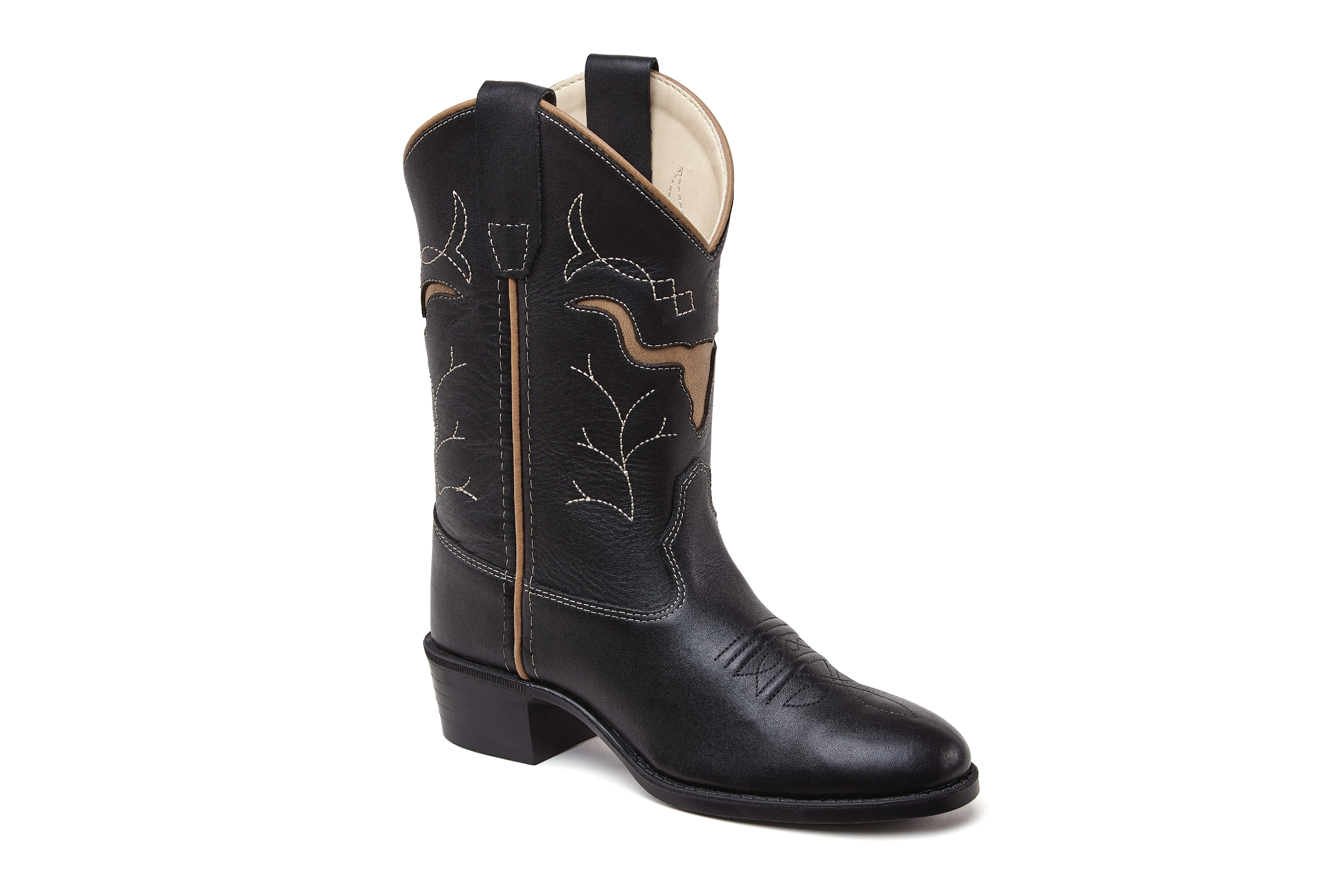 Cowboy boots for children OLD WEST 1153 Black foot and shaft with beige wipe-out inlay