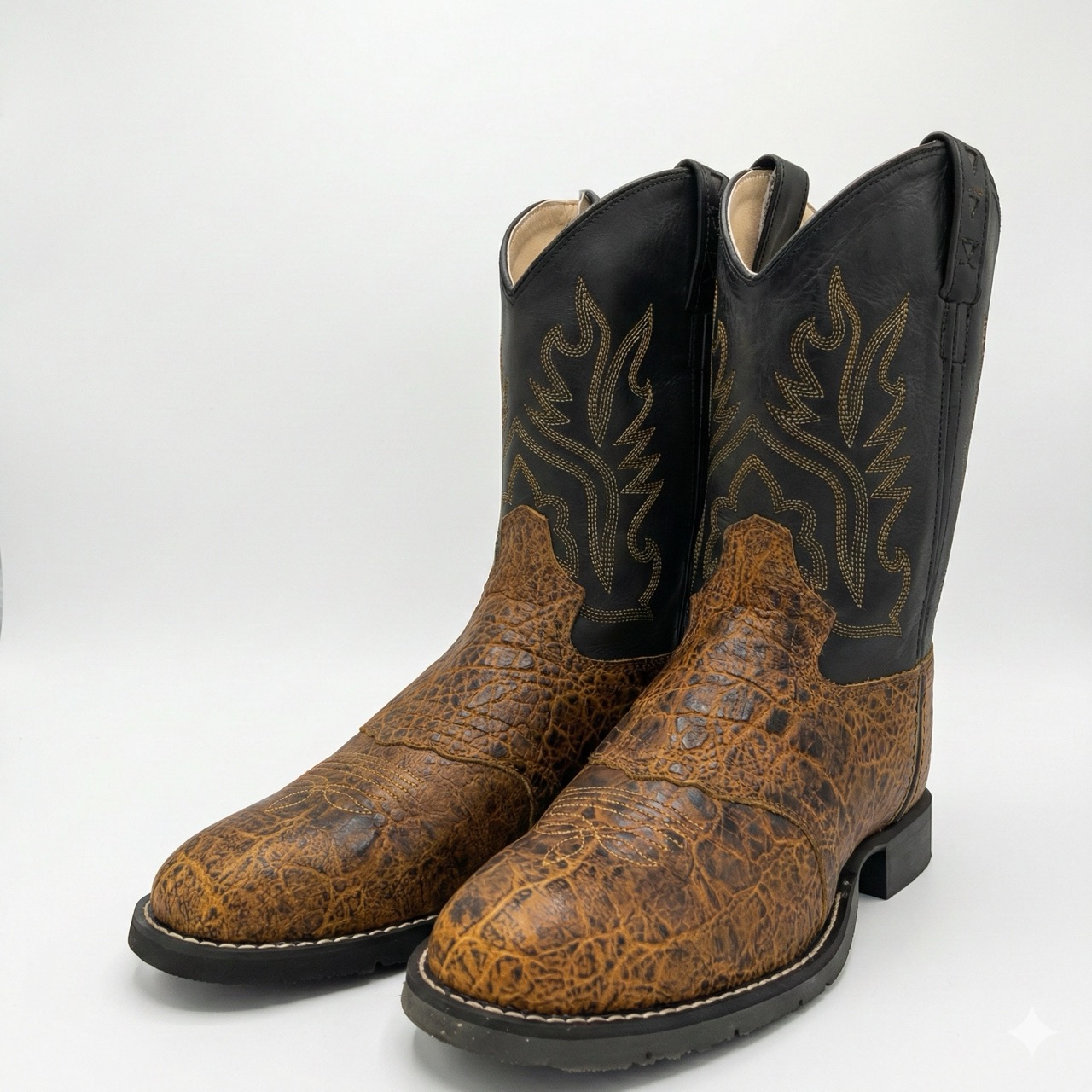 Cowboy boots for children OLD WEST Burnt Vintage Foot with Black Shaft