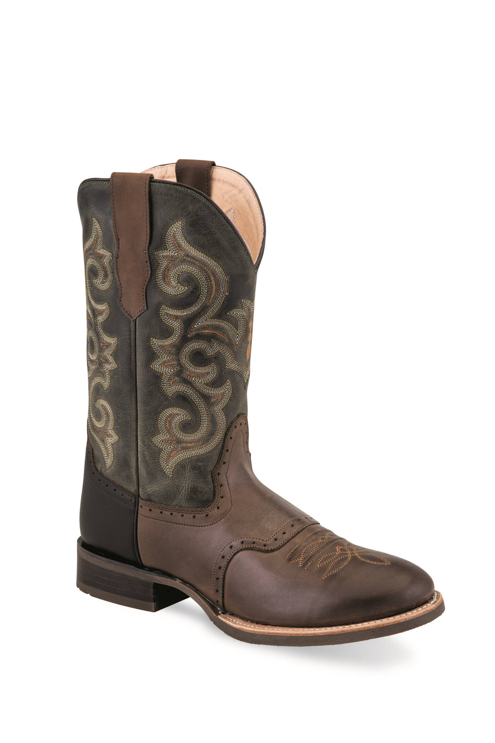 Cowboy boots for men 5703, brown-dark green Chocolate Barnwood Foot / Olive Green Shaft with Oiled Rust Counter