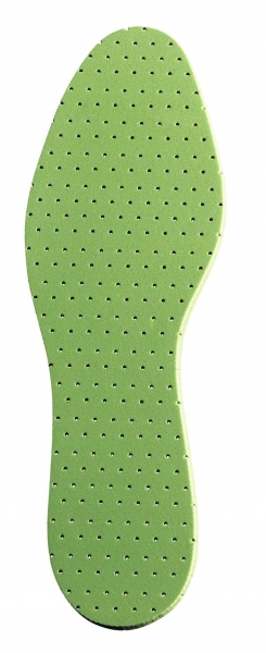 Insole for children's shoes, 3.3mm Latex foam green with a cotton overlay. The perforation ensures good air circulation. Approx. 3.3 mm thick