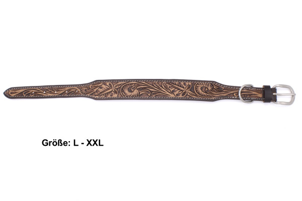 Very elegant and high-quality dog collar made of genuine leather with a beautiful vintage-look punched decoration.