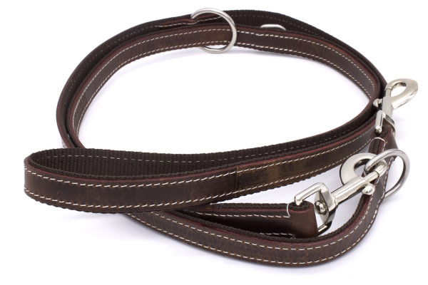Vintage dog lead made of genuine leather, nylon reinforced
