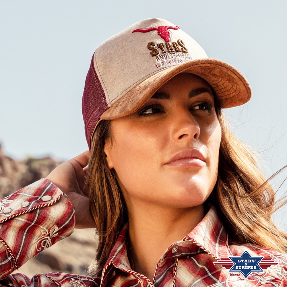 The 3-colour trucker cap, consisting of 5 panels without a centre seam, is a real eye-catcher. The hard-wearing body in a suede look is high-quality and robust. The elaborate 3D embroidery on a mauve-coloured background at the front, the airy mesh insert and the brown suede-look peak with decorative stitching make the curved brim cap a cool collector's item. It is ideal for outdoor activities. The trucker cap has a button covered in cap fabric on the top, which provides the perfect finishing touch. The size can be adjusted using the classic snapback fastening at the back of the head. This guarantees the perfect fit. A cotton sweatband ensures optimum moisture regulation. The trendy trucker cap in a timeless design can be combined with any style.