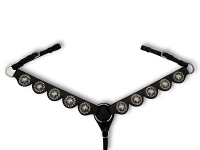 Product information "Western leather breastplate, black with large conchos Baroque breastplate"