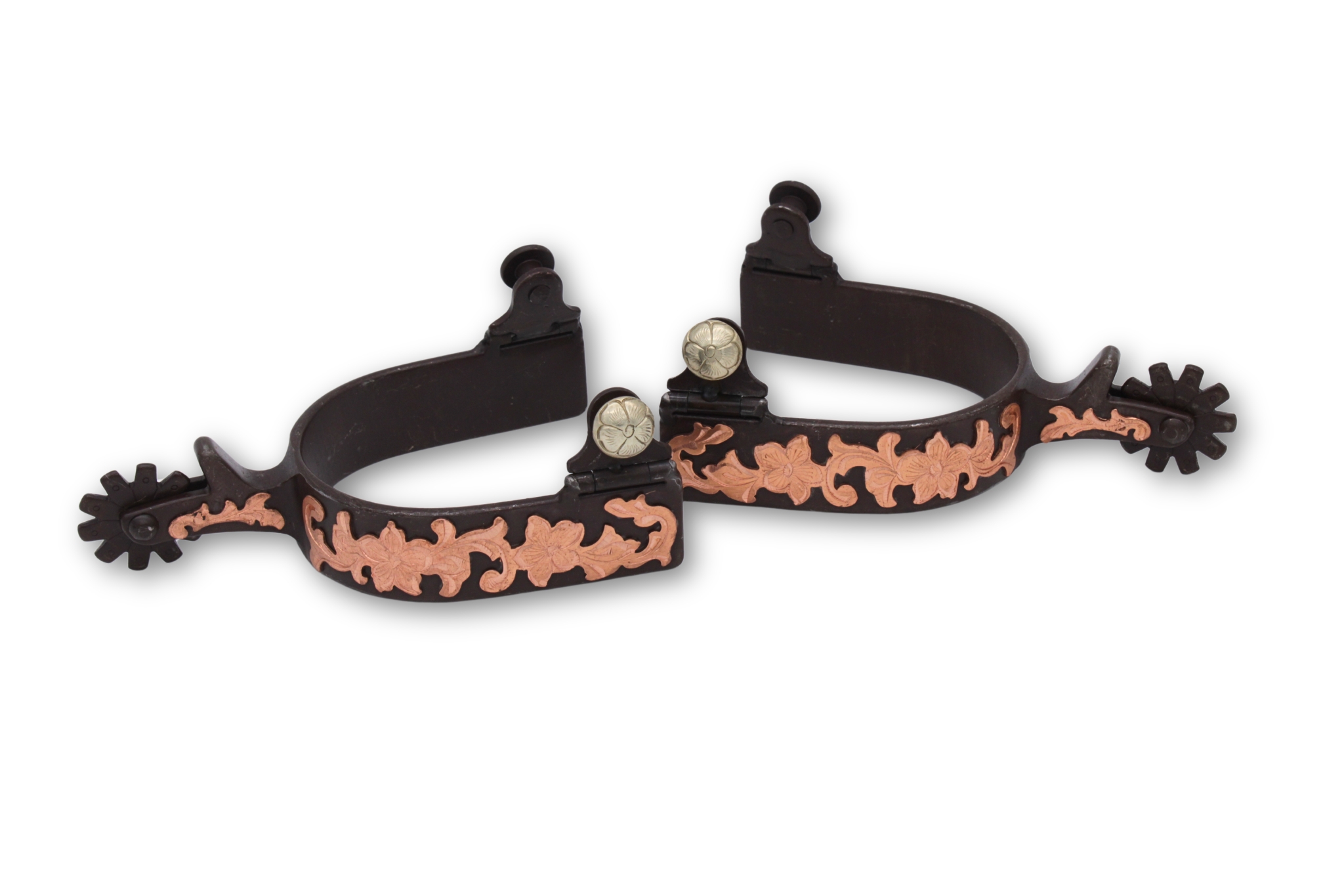 Edle Westernsporen mit floralem Kupferdekor vereinen traditionelles Design mit hochwertiger Verarbeitung.
