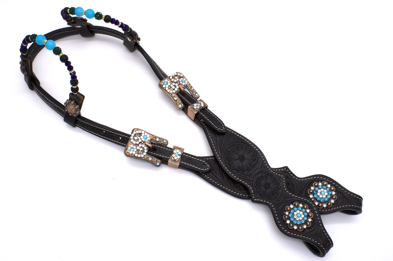 Zweiohr Show Westerntrense schwarz-türkis mit Perlen-Earloop